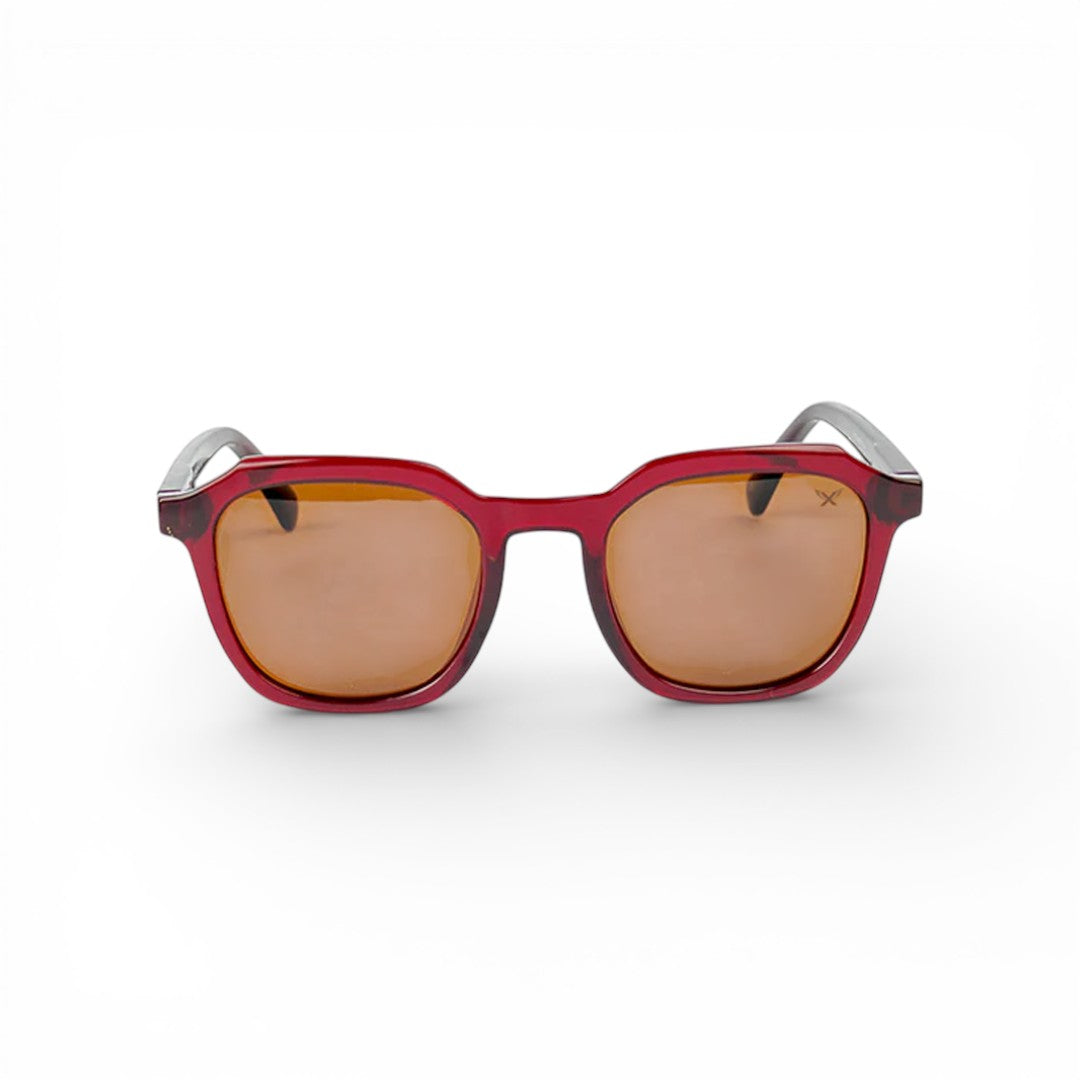 Crimson brings warm, rich energy with a smooth, confident vibe. The deep maroon transparent frame paired with brown tinted lenses gives a warm tone that feels classy but still young. The softly rounded shape keeps it relaxed while adding just enough edge to stand out.