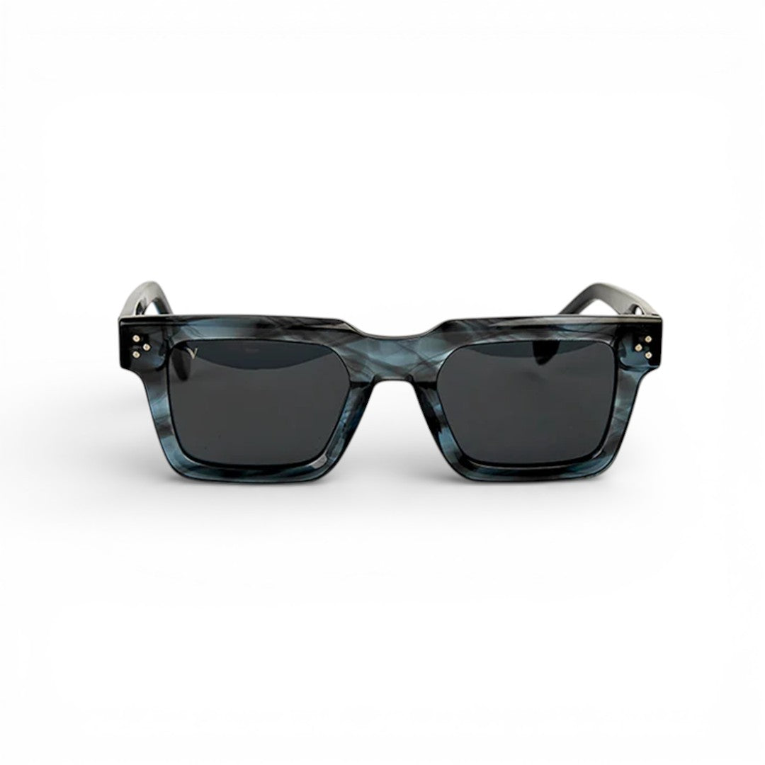 The blue-black marble frame with deep black polarized lenses gives pure “don’t mess with me” energy. Thick square build. Heavy drip. Zero apologies.